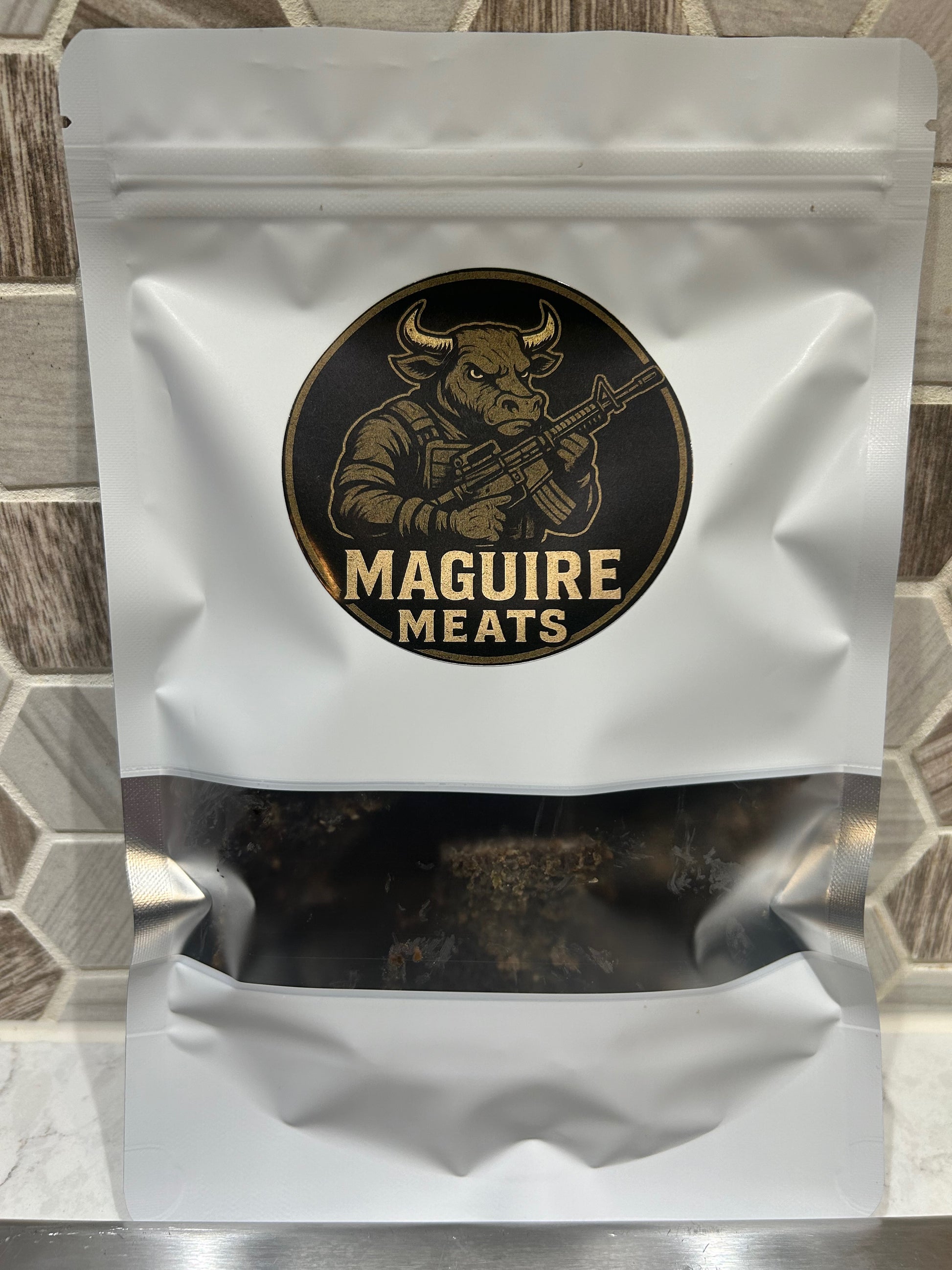 Garlic Ordnance jerky is a precision strike of flavor made with 100% all natural beef and packed with fresh, organic garlic never dried, never powdered. Each strip is marinated with a battle ready blend of organic herbs, spices, and real ingredients to deliver maximum impact with every bite.